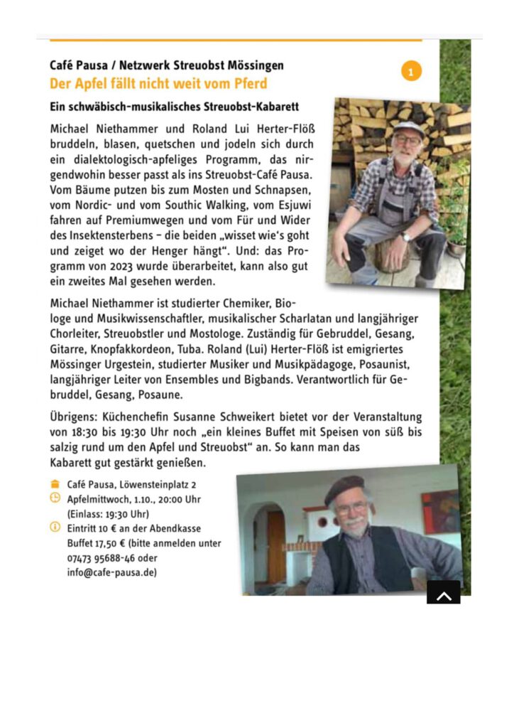 Mi. 1.10. 2025 20Uhr Mössingen, Cafe Pausa